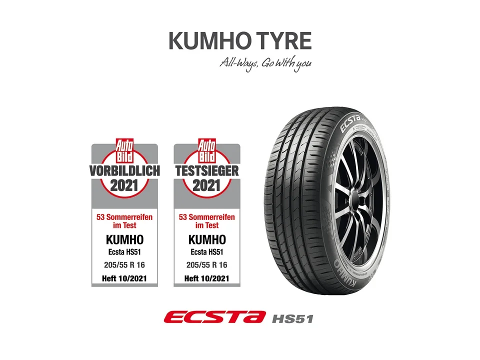 El neumático Kumho Ecsta HS51 ganó en prueba de Auto Bild, la revista automotriz más grande de Europa, donde se probó un total de 53 modelos de neumáticos actuales en el tamaño de neumático 205/55R16, la dimensión más vendida en Alemania y en muchos países europeos.